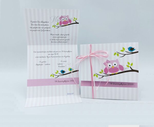 Newage 20b071 ti Προσκλητήρια βάπτισης με κουκουβάγια