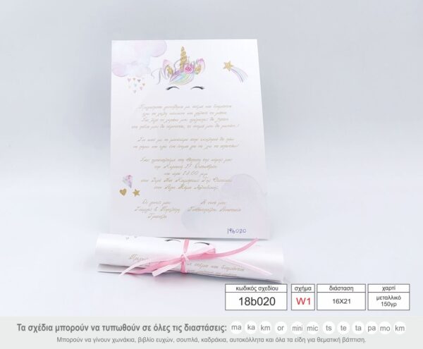 Newage 18b020 w1 Προσκλητήριο βάπτισης με μονόκερο