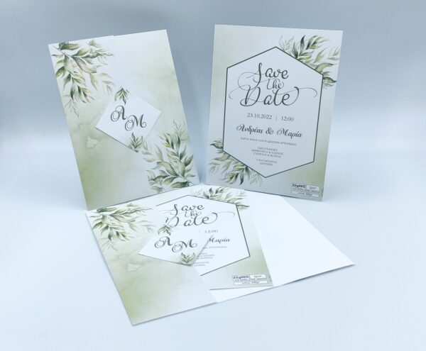 Newage 22g005 trop Προσκλητήρια γάμου πράσινα φύλλα